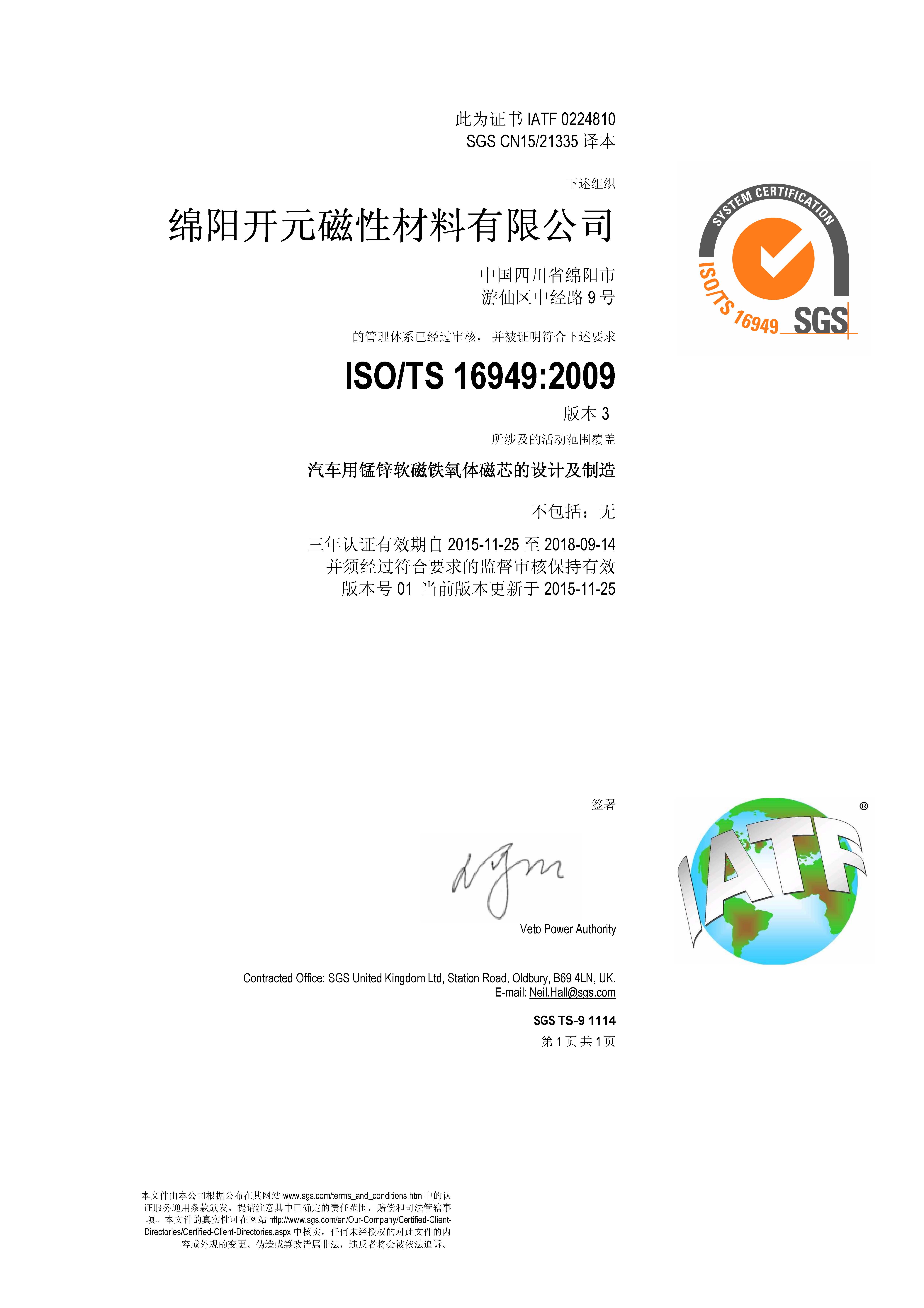 经过全体员工一年多的努力学习,不断完善相关程序文件,2015年11月25日顺利通过了TS16949认证,此次认证的通过为我公司不断扩大汽车电子市场奠定了良好的基础。