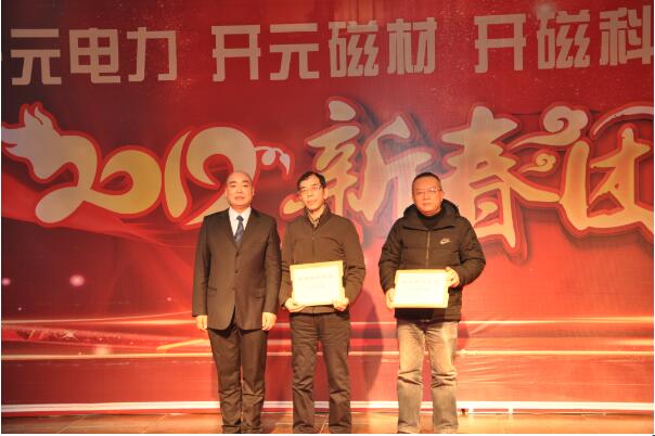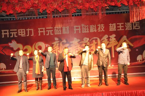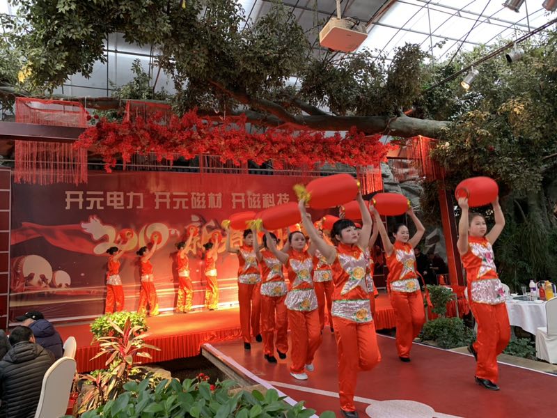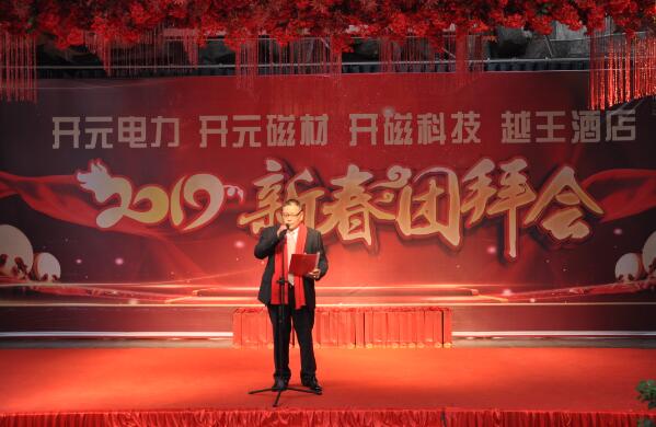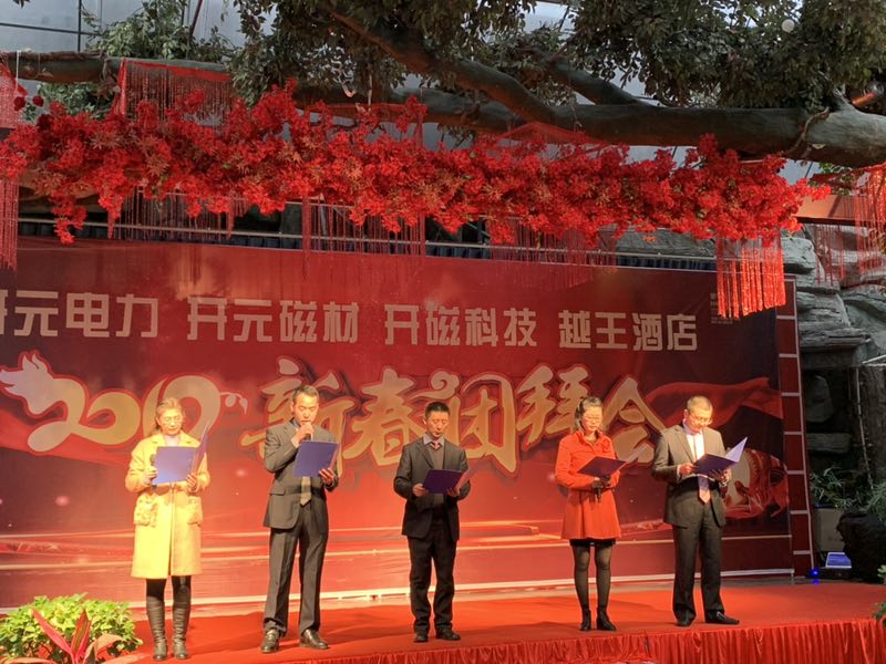 2019年1月31日下午1点,开元电力、开元磁材、开磁科技、越王酒店在磁材公司广场隆重举行新春团拜会,大会共分新春运动会,表彰大会、文艺汇演、迎新晚宴: